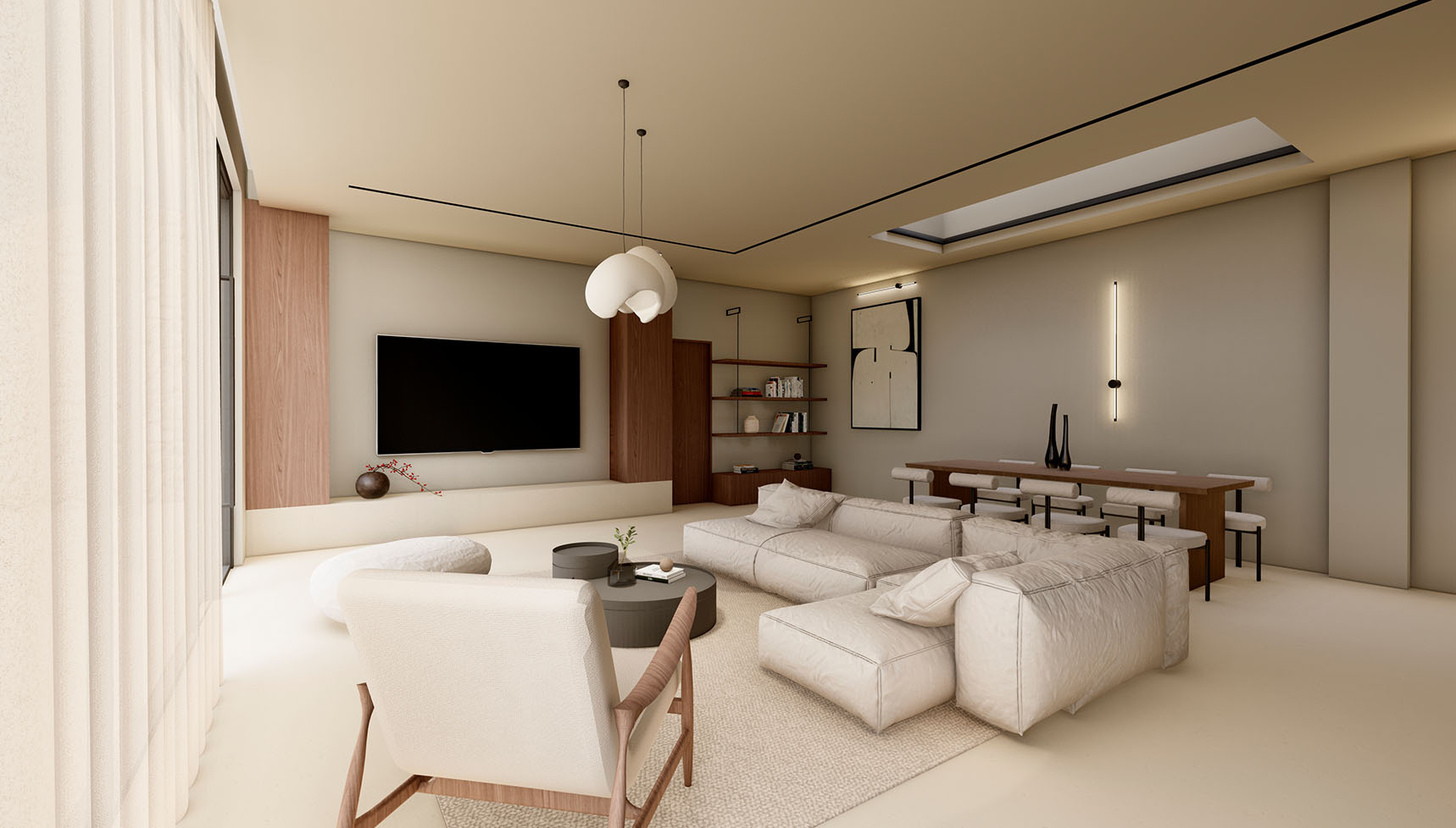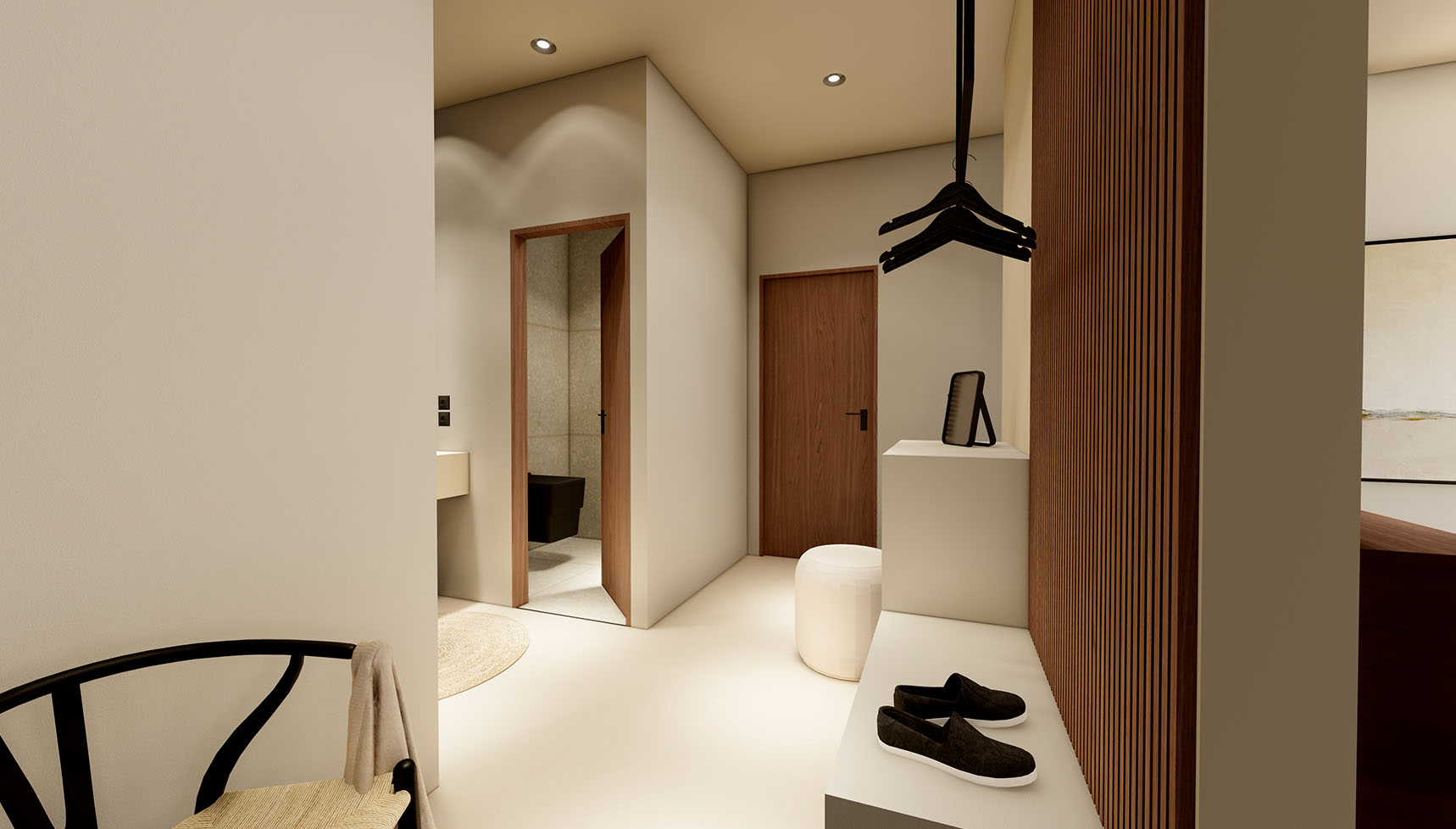 This elegant residence consists of the ground floor and the basement, with total areas of 150,05 square meters, featuring four bedrooms, each with an en-suite bathroom and three additional WCs, as well as walk-in closets and a high-quality integrated cooling system for absolute comfort.